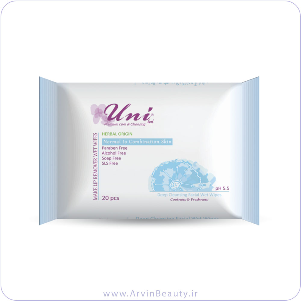 دستمال مرطوب پاک کننده آرایش یونی مخصوص پوست معمولی تا ترکیبی 20 برگی